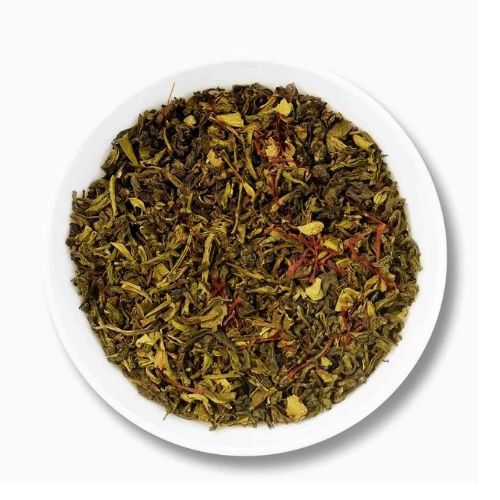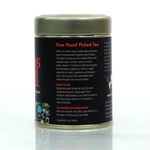 Saffron is world’s most coveted spice which was used in tea by ancient Egyptians and Persians. The bright red stigmas of the saffron flower lend a golden colour and has marked aroma of saffron strands. The flavour is delicate along with the fresh taste of green tea. Saffron is highly valued for its health properties and himalayan green tea is loaded with antioxidants which helps strengthen the immune system.